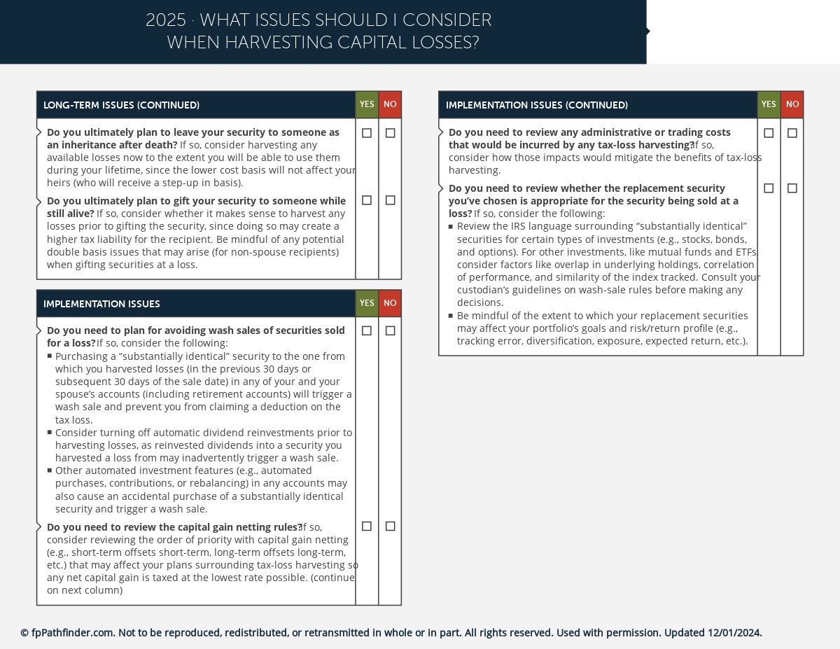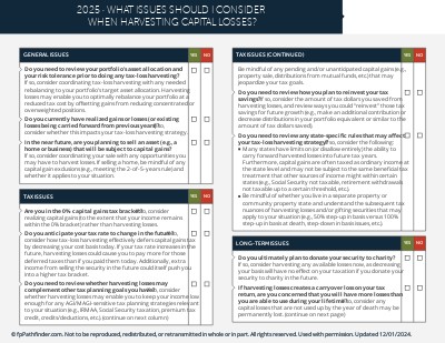 With this checklist, you will be better prepared to help your clients determine whether harvesting capital losses is appropriate for their financial situation.